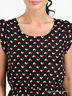 Детали: округлый вырез горловины, короткий рукав, без застежки, резинка по линии отреза лифа, два передних кармана, принты
