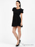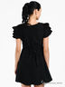 Детали: округлый вырез горловины, короткий рукав декорирован оборками, вытачки, скрытая застежка на молнию на спинке, ленты выполняющие роль пояса пришиты на полочке