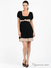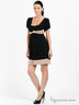 Детали: округлый вырез горловины, короткий рукав посажен на манжету, отрезной лиф, контрастный поясок, контрастная вставка по нижней части изделия
