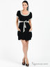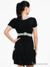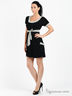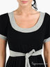 Детали: контрастный округлый вырез горловины, короткий рукав посажен на контрастную манжету, отрезной лиф, контрастный поясок, вставка из многорядной резинки на спинке, складки, два боковых кармана