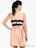 Детали: округлый вырез горловины, лямки, отрезной лиф, по боковым швам пришиты ленты-завязки, контрастные вставки, складки