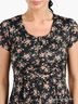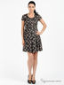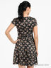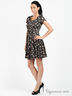 Детали: округлый вырез горловины, короткий рукав, отрезной пояс украшен бантиком, встречная складка на юбке, принты