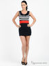 Детали: округлый вырез горловины декорирован оборкой, лямки, контрастный отрезной пояс