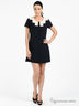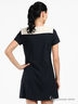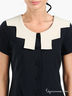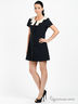 Детали: округлый вырез горловины, оригинальный отложной контрастный ворот, короткий рукав, застежка на пуговицы на полочке