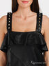 Детали: бретели и имитация карманов украшены декоративными элементами; застегивается на молнию сзади; дополнено оригинальными воланами