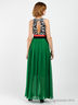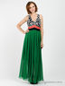 Длинное роскошное платье с V-образным вырезом горловины, застежкой на молнию сбоку и золотистые пуговицы сзади. Силуэт приталенный. Глубокий вырез на спинке. Свободная расклешенная юбка с односторонними складками. Отличный вариант для особых случаев!