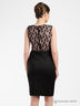 Платье классического кроя без рукавов с округлым вырезом горловины. Эффект 2в1. Кружевной лиф. На нижней части платья небольшой вырез спереди.