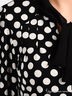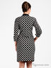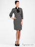 Платье черное в крупный белый горох. Длинные рукава и приталенный покрой. Вырез горловины оформлен чудесным бантом. Прекрасный вариант для офиса.