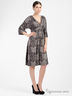 Платье с длинными рукавами и глубоким вырезом декольте. Оригинальная расцветка и приталенный покрой придадут шарма его обладательнице.