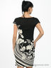 Детали: округлый вырез горловины, цельнокроеный рукав, контрастный принт