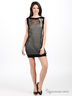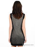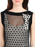 Оригинальное платье приталенного кроя. Выполнено из гладкой ткани и ткани в сеточку. Округлый вырез, без рукавов. На полочке декоративный элемент в форме банта. Принт в горошек.