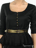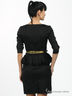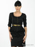 Детали: округлый вырез горловины, укороченный рукав с манжетами на пуговицах, застежка на пуговица на полочке, скрытая застежка на молнию в левом боковом шве, фигурные вытачки, оборки под линией талии, пришиты шлевки, вставлен двойной ремешок