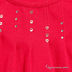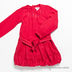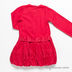 Платье прямого кроя с юбкой-баллоном застегивается на скрытую молнию на спинке. Манжеты на пуговице. По заниженной линии талии пришиты шлевки, вставлен тканевый поясок. Полочка украшена сборками, паетками и стразами. Левый рукав декорирован вышивкой и стразами.