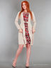 Оригинальное повседневное платье из приятного на ощупь материала. Спереди вставка из яркой ткани, на декоративном ремешке, длинные рукава, круглый вырез. Приталенный силуэт.