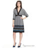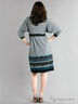 Слегка расклешенное повседневное платье. Рукава 3/4, v-образный вырез, втачной кружевной пояс. Оригинальный принт.