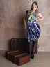 Контрастное платье из гладкого материала. Приталенный крой, присборено, круглый вырез, короткие рукава. Оригинальный сочный принт.