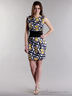 Детали: широкий округлый вырез; контрастный пояс; оригинальный принт