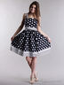 Детали: бретели, втачной пояс и низ изделия декорированы принтом - полоска; платье украшено принтом - горох