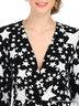 Детали: глубокое декольте; длинный рукав; отрезной лиф; юбка с запахом; оригинальный принт; поролоновые плечики