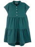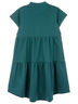 Платье с коротким рукавом, трапециевидного силуэта. По переду застежка на контрастные пуговички. Изготовлено из кулирки с эластаном. Спинка удлиннена на 6 см относительно переда.