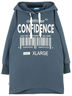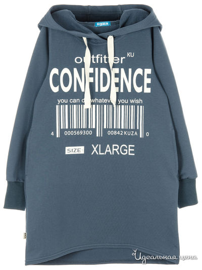 Платье с длинным рукавом и капюшоном, в рукавах манжеты. Спереди стильный принт. Спинка удлиненная. В боковых швах карманы. Изготовлено из петельчатого футера с эластаном.