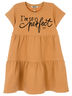 Платье с коротким рукавом, трапециевидного силуэта. По переду стильная печать. Изготовлено из кулирки с эластаном.