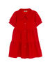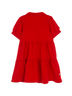 Платье с удобной застежкой на пуговички по переду, с коротким рукавом-фонарик на манжете, воротник отложной. Длина платья до колена. Изготовлено из плотной кулирки с эластаном.