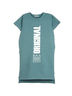 Платье-футболка прямого силуэта с коротким рукавом и стильным принтом на груди. По боковым швам разрезы и два кармана, перед укорочен. Длина платья ниже колена. Универсальная модель для базового гардероба. Изготовлено из кулирки с эластаном.