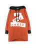 Платье с длинным рукавом и капюшоном, в рукавах манжеты. Спереди стильный принт. Спинка удлиненная. В боковых швах карманы. Изготовлено из петельчатого футера с эластаном.