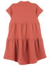 Платье с коротким рукавом, трапециевидного силуэта. По переду застежка на контрастные пуговички. Изготовлено из кулирки с эластаном. Спинка удлиннена на 6 см относительно переда.