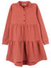 Платье средней длины, перед укорочен. Спереди кокетка с застежкой на пуговицы. Рукав длинный на манжете. Изготовлено платье из кулирки с эластаном.