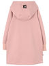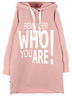 Платье с длинным рукавом и капюшоном, в рукавах манжеты. Спереди стильный принт. Спинка удлиненная. В боковых швах карманы. Изготовлено из петельчатого футера с эластаном.