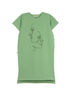 Платье-футболка прямого силуэта с коротким рукавом и стильным принтом на груди. По боковым швам разрезы и два кармана, перед укорочен. Длина платья ниже колена. Универсальная модель для базового гардероба. Изготовлено из кулирки с эластаном.