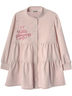 Платье с длинным рукавом на манжетах, воротник стойка. Застежка на рукавах и по переду на кнопочках. На груди милый принт со стразами. Изготовлено из кулирки с лайкрой.