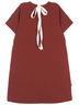 Платье с коротким рукавом, сперди принт. По спинке декоративный шов и завязка контрастного цвета. Изготовлено платье из кулирки с эластаном.