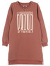 Платье с длинным рукавом, в горловине и рукавах манжеты. Спереди стильный принт. Спинка удлиненная. В боковых швах карманы. По бокам разрезики. Изготовлено из петельчатого футера с эластаном.