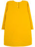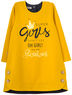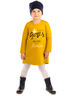Платье с длинным рукавом, перед укорочен, в горловине планка. По низу платья декоративные обтачки, украшены пуговичками. Спереди симпатичный принт, по спинке застежка на кнопки. Изготовлено из футера без начеса.