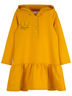 Платье с длинным рукавом. По переду застежка на кнопки. Капюшон с манжетом. Изготовлено из петельчатого футера с эластаном.