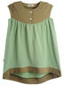 Платье с коротким рукавом, перед укорочен. Лиф отрезной. По переду застежка на кнопки, изготовлено из кулирки с лайкрой.