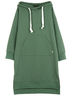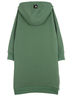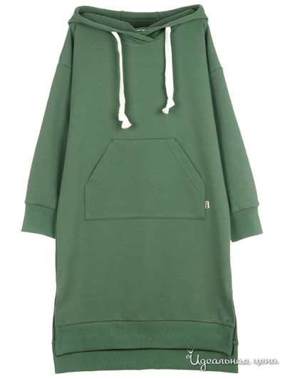 Платье ниже колена, перед укорочен, рукав длинный на манжете. Спереди карман "кенгуру". В капюшоне лента. В боковых швах разрезы. Изготовлено из петельчатого футера с эластаном.
