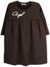 Платье с рукавом ниже локтя, с отворотом. Лиф отрезной. По переду стильный принт со стразами. Изготовлено из кулирки с лайкрой.