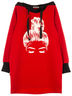 Платье с длинным рукавом и капюшоном, в рукавах контрастные манжеты. Спереди стильный принт со стразами. Спинка удлиненная. В боковых швах карманы. Изготовлено из петельчатого футера с эластаном.