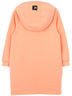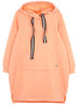 Платье ниже колена, перед укорочен, рукав длинный на манжете. Спереди карман "кенгуру". В капюшоне лента. В боковых швах разрезы. Изготовлено из петельчатого футера с эластаном.
