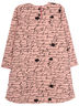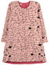Платье с длинным рукавом, перед укорочен, в горловине планка. По низу платья декоративные обтачки, украшены пуговичками. По спинке застежка на пуговицы. Изготовлено из футера без начеса.