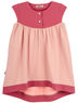 Платье с коротким рукавом, перед укорочен. Лиф отрезной. По переду застежка на кнопки.