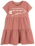 Платье с коротким рукавом, трапециевидного силуэта. По переду стильная печать. Изготовлено из кулирки с эластаном.