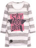 Платье с длинным рукавом. Перед укорочен, по бокам два разреза. По переду стильный принт.