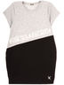Платье с коротким рукавом. В горловине манжет. В боковых швах карманы, снизу разрезы. Спереди модный принт.