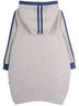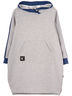 Платье ниже колена, перед укорочен, рукав длинный на манжете. Спереди карман "кенгуру". На капюшоне и рукавах лампасы. В боковых швах разрезы. Изготовлено из петельчатого футера с эластаном.