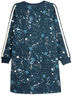 Платье с длинным рукавом на манжете, в горловине планка. Спинка удлиненная. На рукавах лампасы. В боковых швах карманы. Боковые разрезы окантованы декоративной тесьмой. Изготовлено из петельчатого футера с эластаном.
